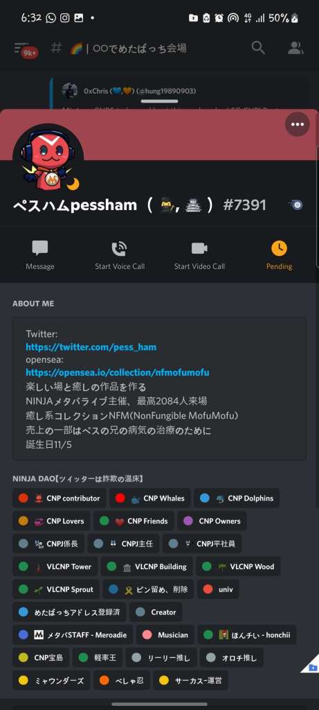 The founder, who is simply known as Pessham is said to be in charge of the Metabacchi. he is known on twitter as @pess_ham and on discord with Id ペスハムpessham (🥷, 🏯)#7391